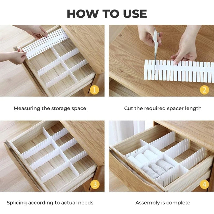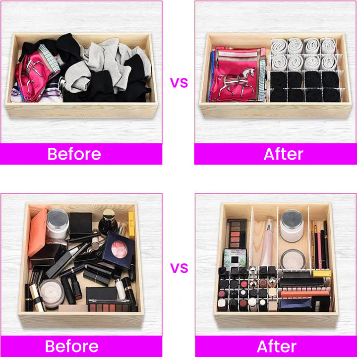 Declutter your drawers in seconds with this flexible, easy-to-install organizer. Perfect for socks, ties, makeup, and more — customize your space your way!