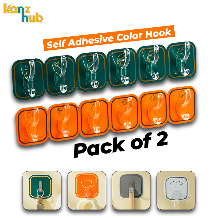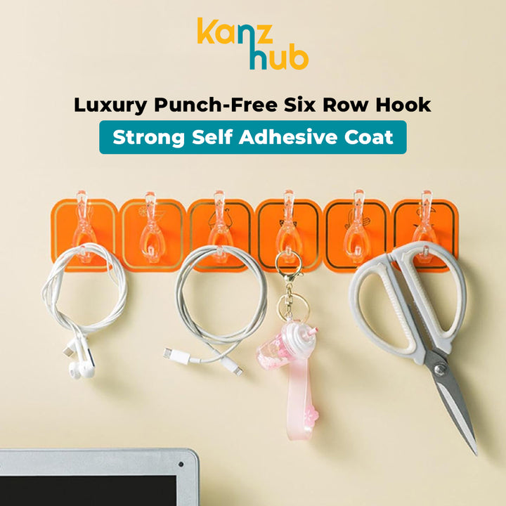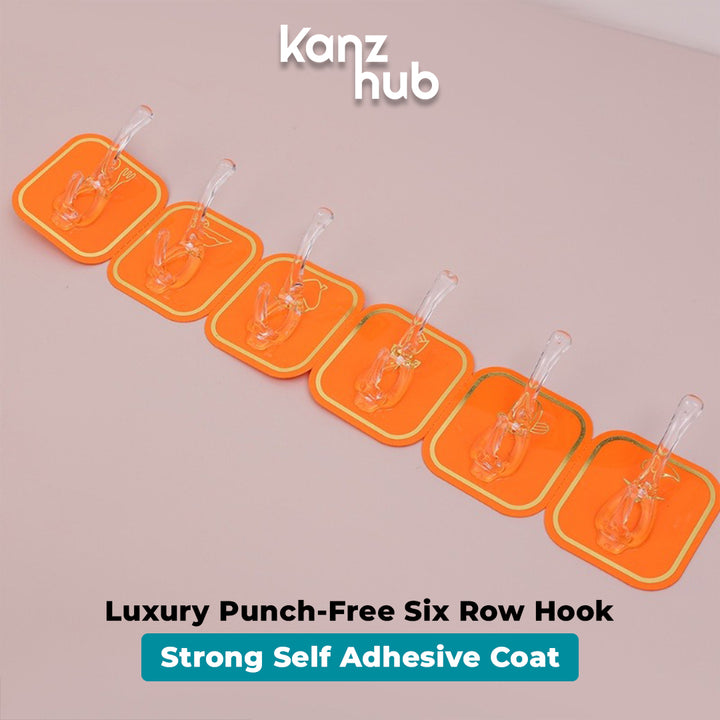 luxury Punch Free Six Row Hook - Strong Self Adhesive Coat - Pack of 2
